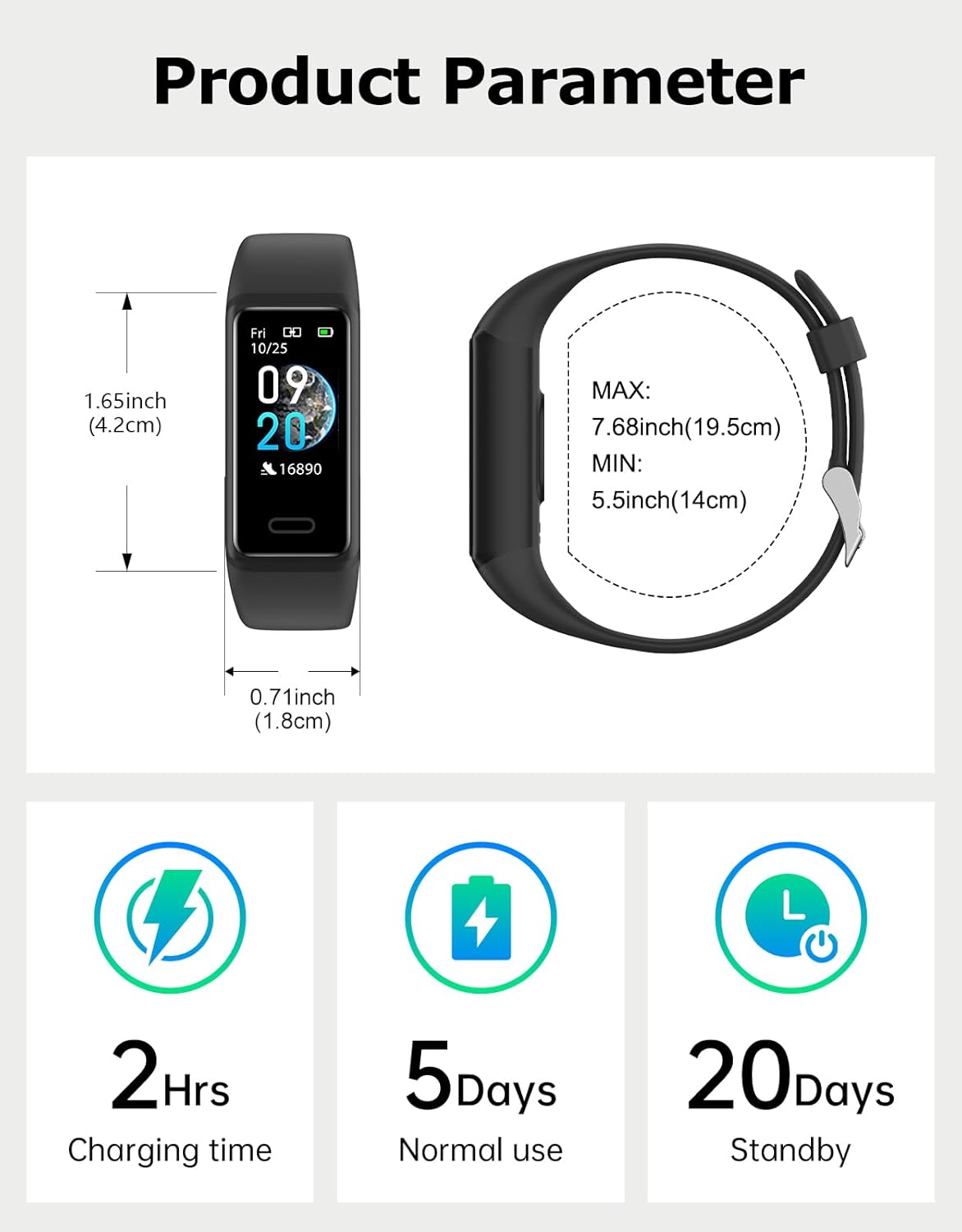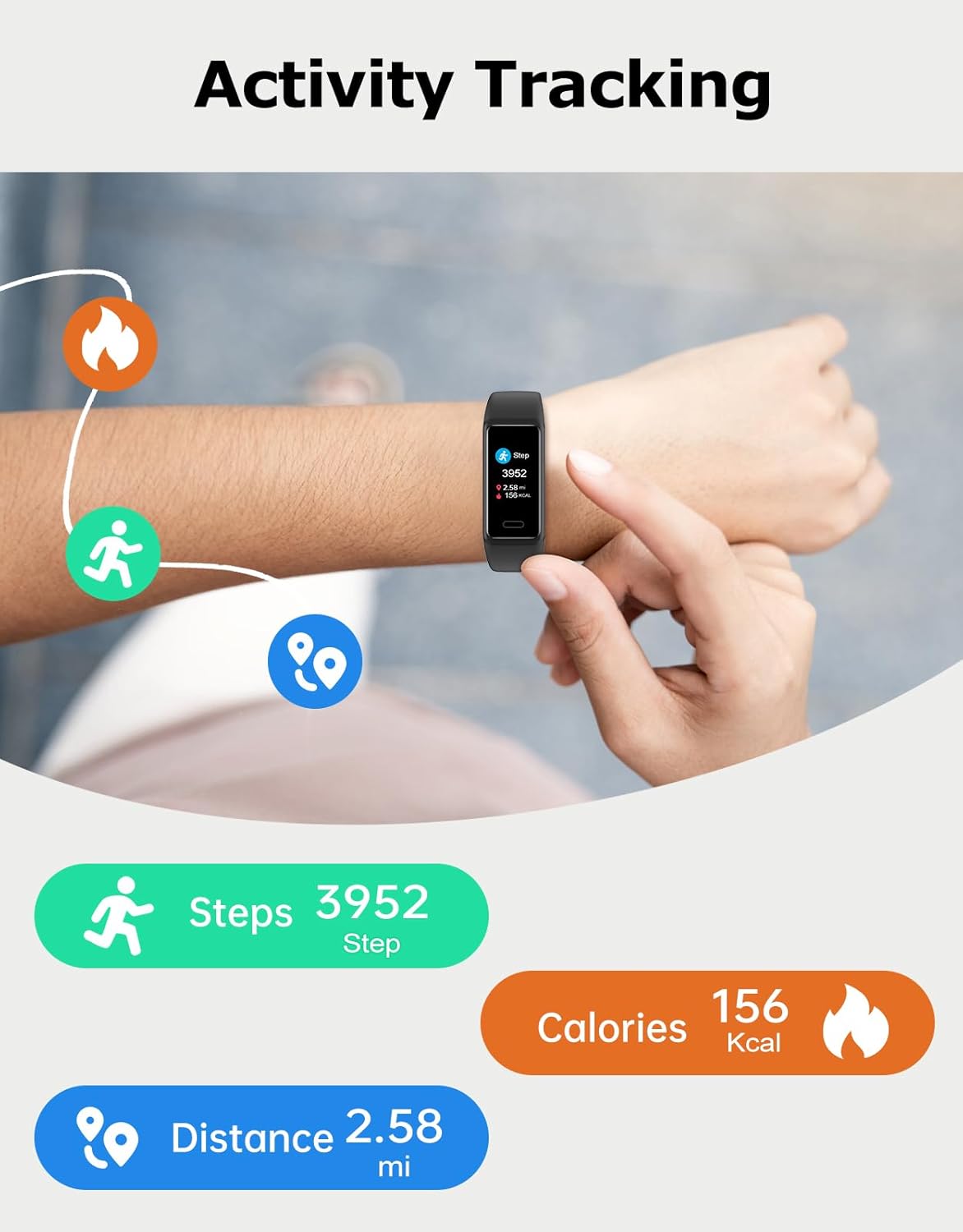 Designed to keep up with your active lifestyle, this fitness tracker is IP68 waterproof, so you can wear it in the rain, during workouts, or even while swimming without any worries. The activity tracker helps you stay motivated and accountable, making it easier to reach your fitness goals.